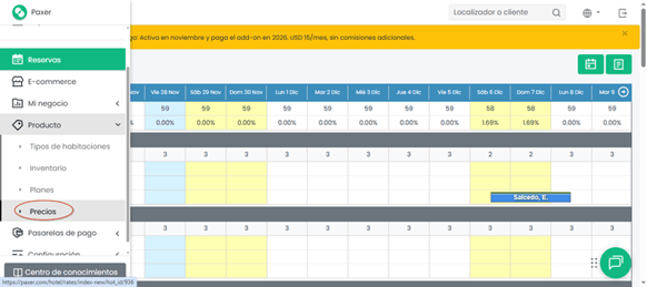 - Seleccionar desde el menú del PMS, la opción Producto-> Precios->Asignación Masiva