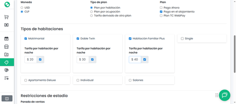 7. Seleccionar las habitaciones a las que se aplicara la tarifa